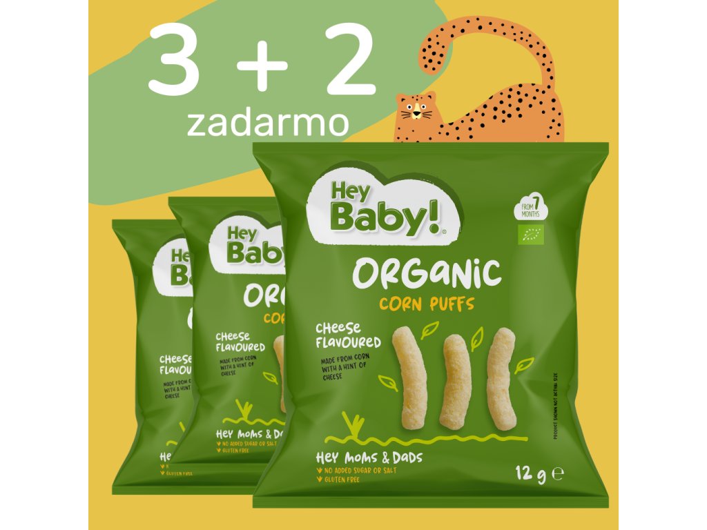 3+2 Hey Baby! - Kukuričné chrumky s príchuťou syra, BIO 12g