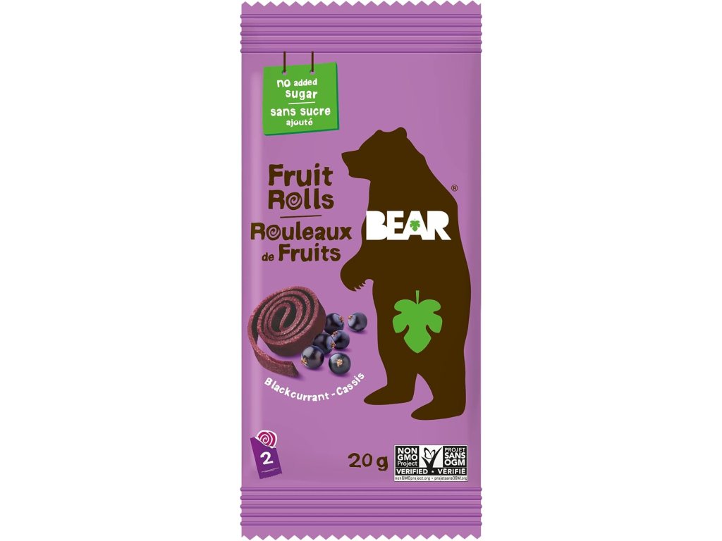 BEAR ovocné rolky sú lahodné jemne pečené rolky vyrobené len z ovocia a/alebo zeleniny. Balenie s hmotnosťou 20 g pokrýva 1 z 5 odporúčaných denných porcií ovocia a zeleniny a obsahuje rovnaké množstvo ovocného cukru ako 1 malé jablko.