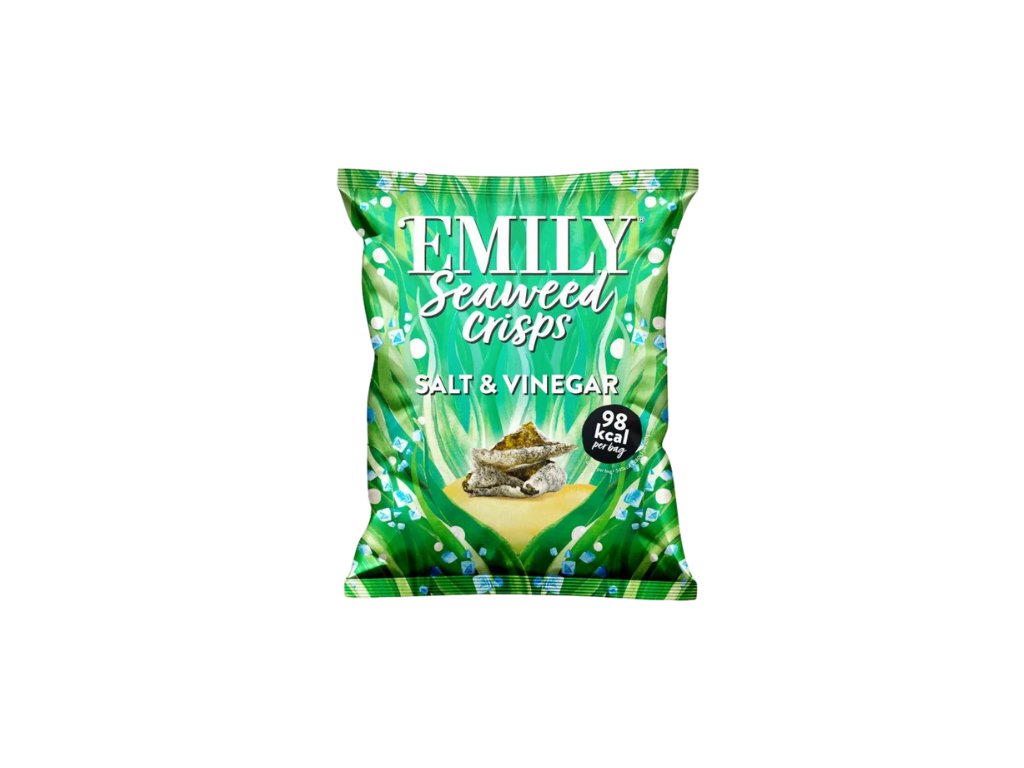 Morské riasy so skutočnou chrumkavosťou!OBJAVTE... chrumky vhodné pre morskú pannu. Ponorte sa do morských rias s kvapkou octu a morskou soľou. Je to chuťová prílivová vlna! Občerstvenie EMILY je odvážnou alternatívou v mori jednotvárnosti. Už nikto nemusí žiť obyčajný život obyčajných zemiakových lupienkov. Zahoďte fádnosť. Jedzte odvážne. Všetky snacky EMILY sú jedinečne odvážne.
