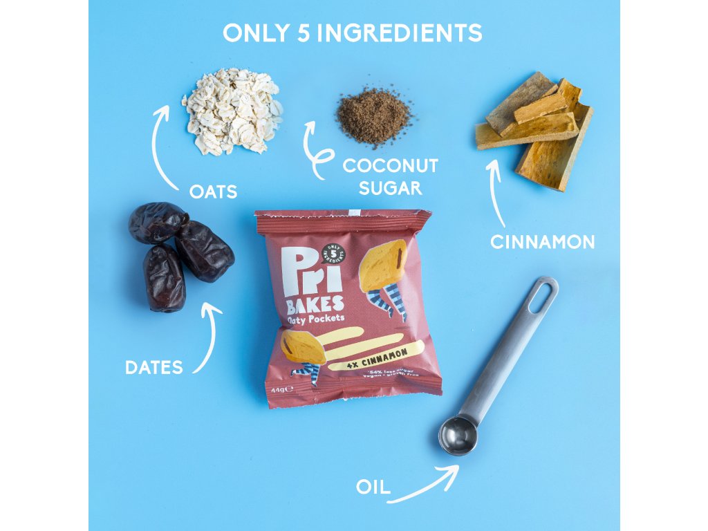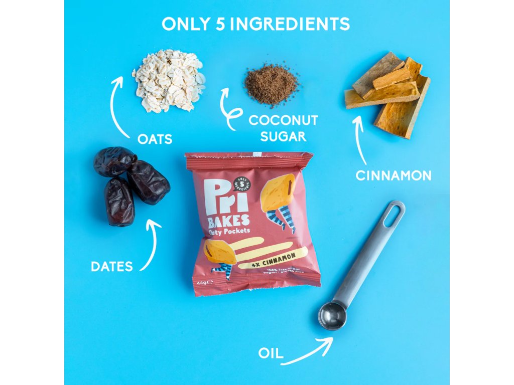 Jemne lepkavá a voňavá škoricová náplň ukrytá v nadýchanom ovsenom pečive. Sladké pečivo plné zdravej radosti. Časy ťažkého, pšeničného pečiva plného lepku sú už minulosťou. Používame len 5 vegánskych ingrediencií – jednoducho ovos, orechy, prírodné sladidlá, maslá a oleje s nízkym obsahom nasýtených tukov. Vždy na báze ovsa – všetky naše produkty sú vyrobené z ľahkého ovseného cesta, bohatého na vlákninu a s nízkym glykemickým indexom.Ľahké a zdravé ovsené dobroty od Pri Bakes sú plné LAHODNE JEDNODUCHÝCH A PRÍRODNÝCH SUROVÍN, ktoré si môže vychutnať každý.
