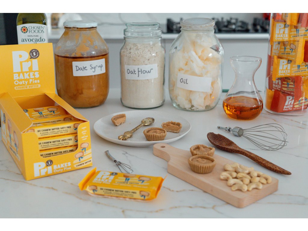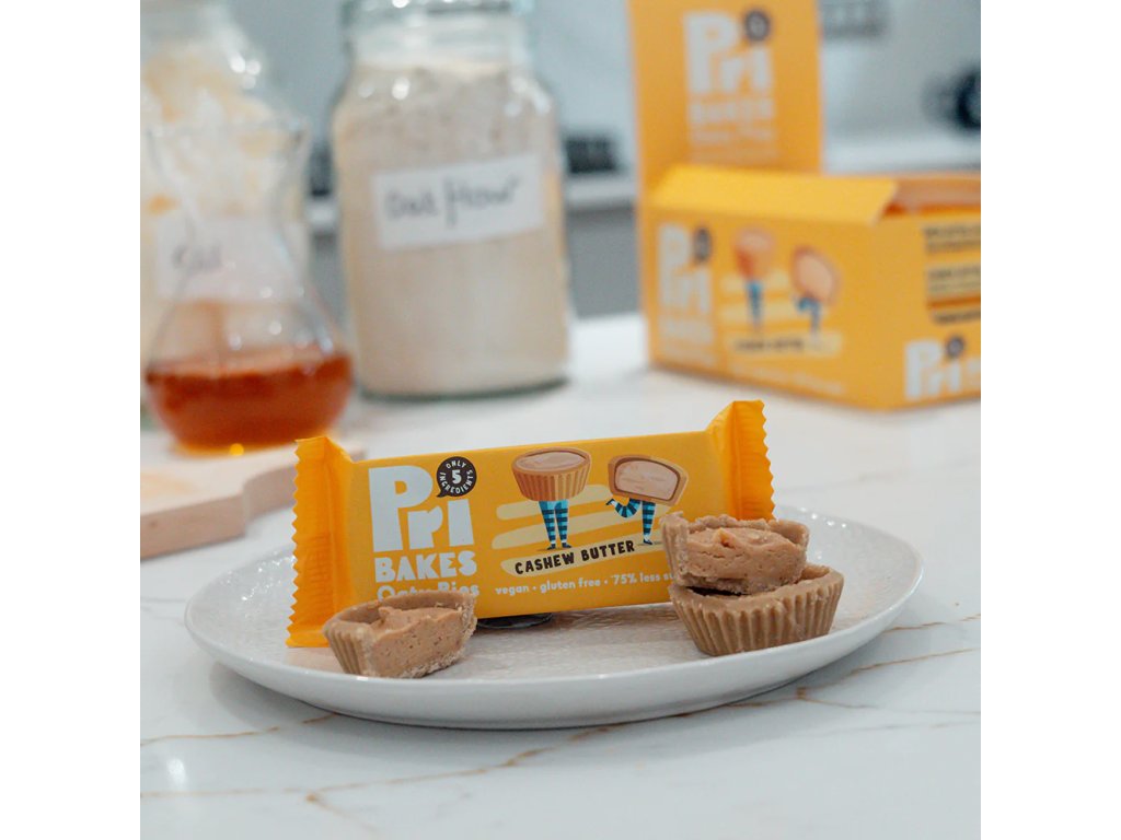 Jemné, krémové kešu maslo ukryté v lahodnej ovsennej kruste. Sladké pečivo plné zdravého potešenia. Koniec ťažkému, pšeničnému a lepkovému pečivu. Len 5 vegánskych ingrediencií – jednoducho ovos, orechy, prírodné sladidlá, maslá a oleje s nízkym obsahom nasýtených tukov. Vždy na báze ovsa – všetky naše produkty sú vyrobené z ľahkého ovseného cesta, bohatého na vlákninu a s nízkym glykemickým indexom.Ľahké a zdravé ovsené dobroty od Pri Bakes sú plné LAHODNE JEDNODUCHÝCH A PRÍRODNÝCH SUROVÍN, ktoré si môže vychutnať každý.
