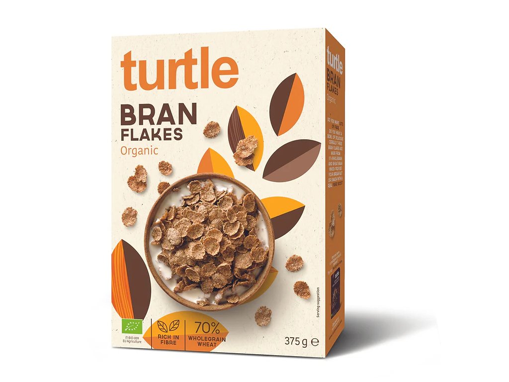 Otrubové vločky Turtle pozostávajú z chrumkavých vločiek vyrobených z pšeničných otrúb. Každá miska otrubových vločiek vám pomôže správne začať deň vďaka vysokému obsahu vlákniny z pšeničných otrúb*. Vychutnajte si ich vychladené s mliekom alebo jogurtom a čerstvým ovocím ako chutné výživné raňajky. *Vláknina z pšeničných otrúb pomáha urýchliť črevný tranzit. Konzumujte aspoň 10 g denne ako súčasť pestrej a vyváženej stravy a zdravého životného štýlu. Jedna porcia Turtle Bran Flakes (35 g) obsahuje 5,6 g vlákniny z pšeničných otrúb.